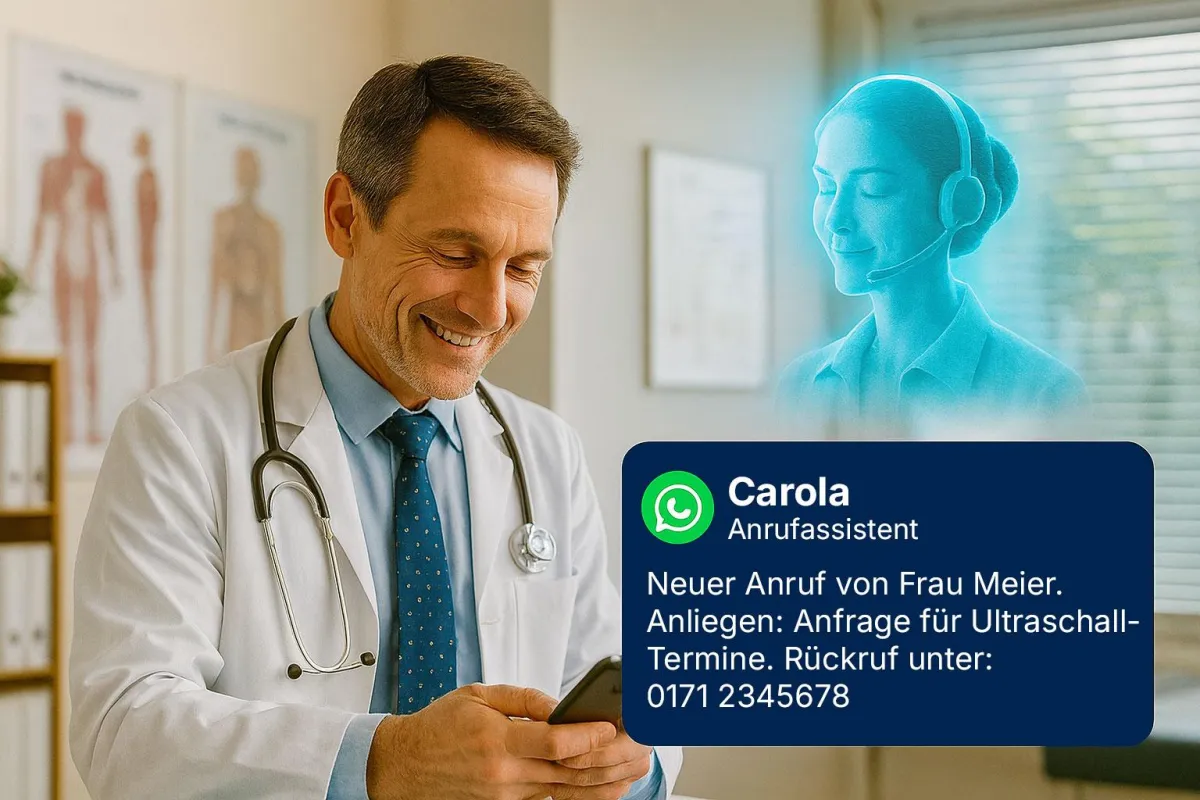 Carola spricht flüssig, stellt Rückfragen und vermittelt Vertrauen – kein Robotergefühl.